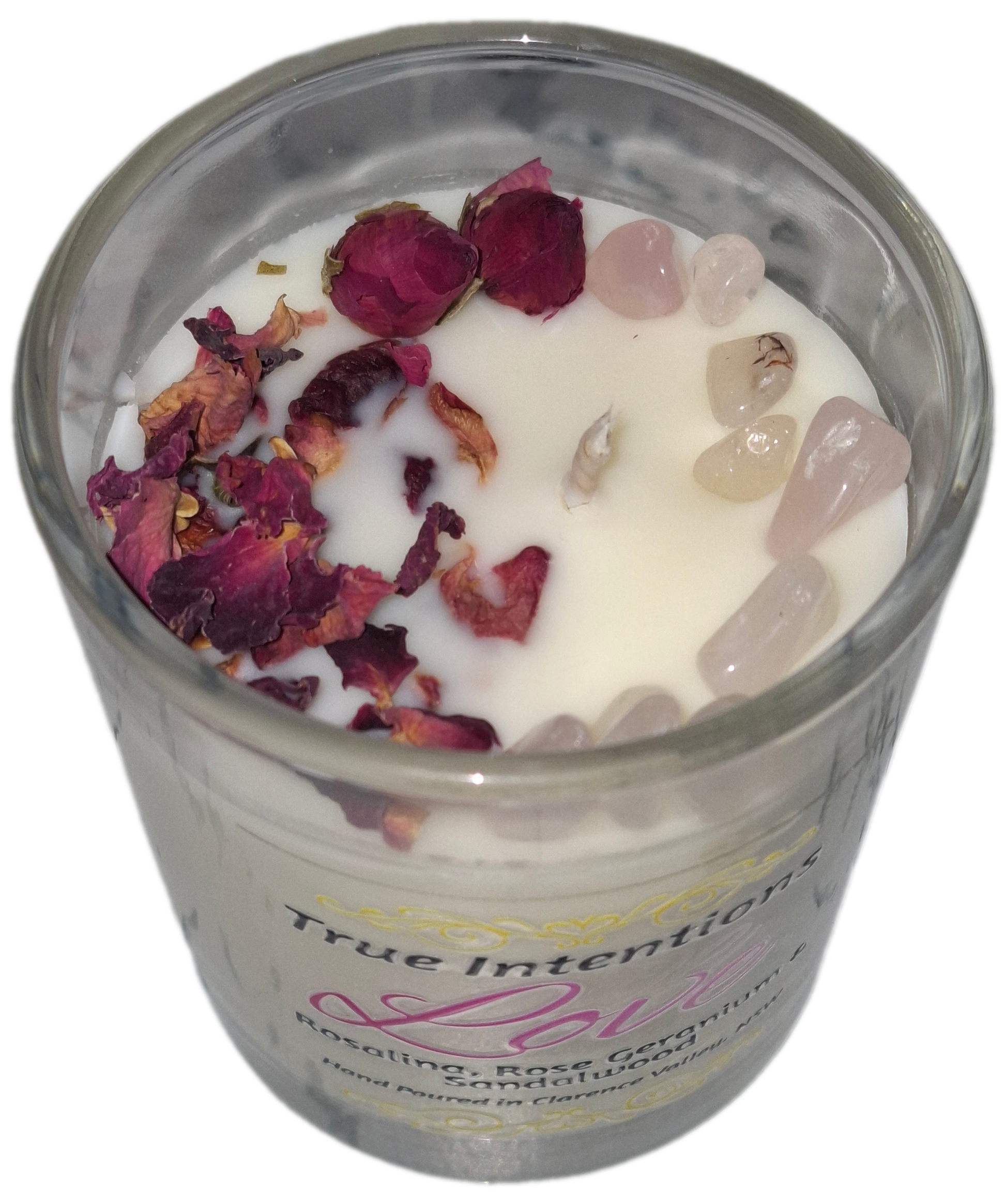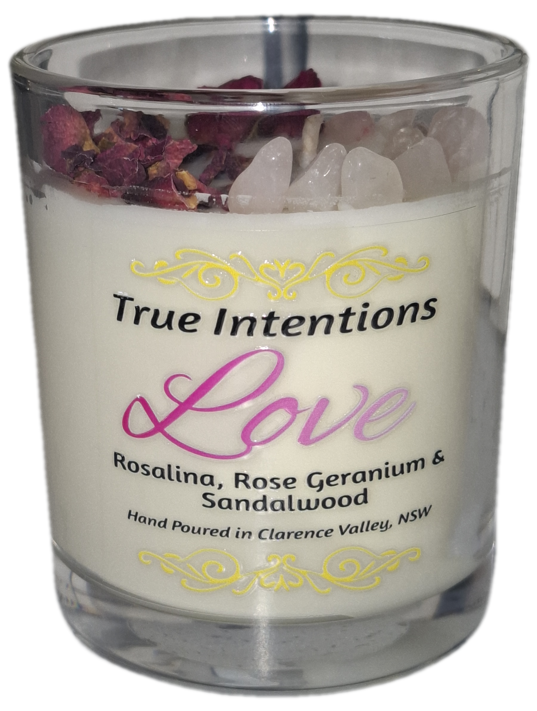 The LOVE candle is designed to wrap your space in a gentle, comforting softness — the kind that encourages deep breaths, open hearts and peaceful connection. This blend brings together the fresh clarity of Rosalina, the sweet floral warmth of Geranium, and the grounding richness of Sandalwood to create a beautifully balanced aroma that feels both tender and steady.